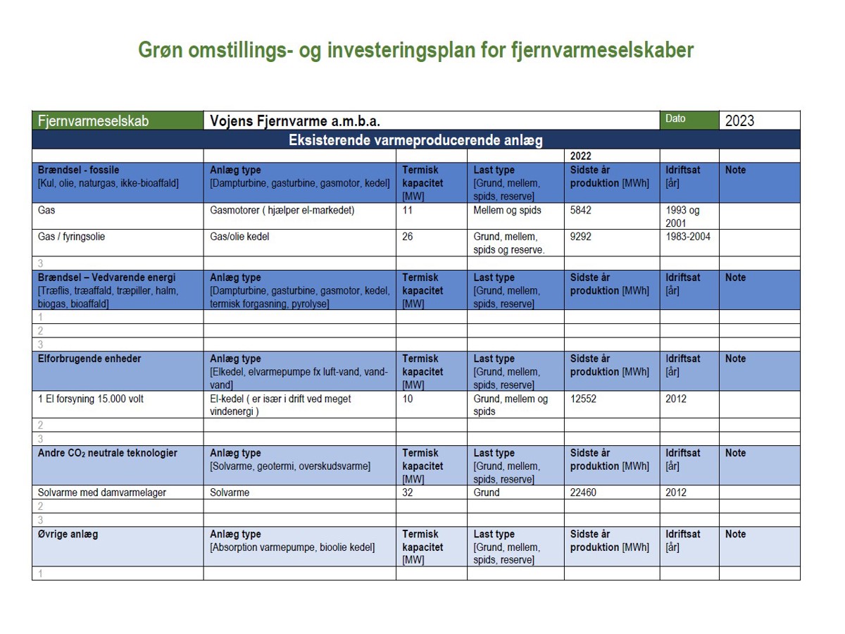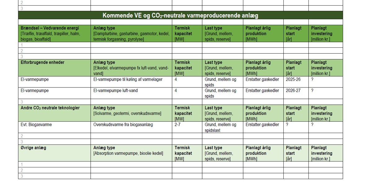 - Hvilken type energi, der er brugt (fx træflis, el, gas, overskudsvarme).